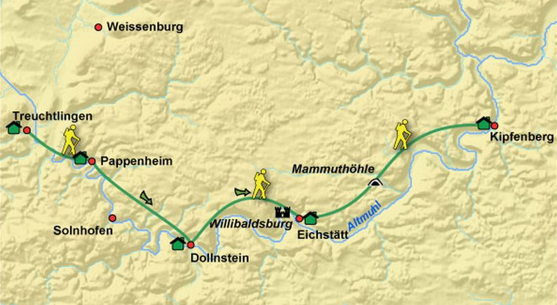 Binnen dit mooiste deel vanaf Pappenheim blinken drie trajectjes uit: